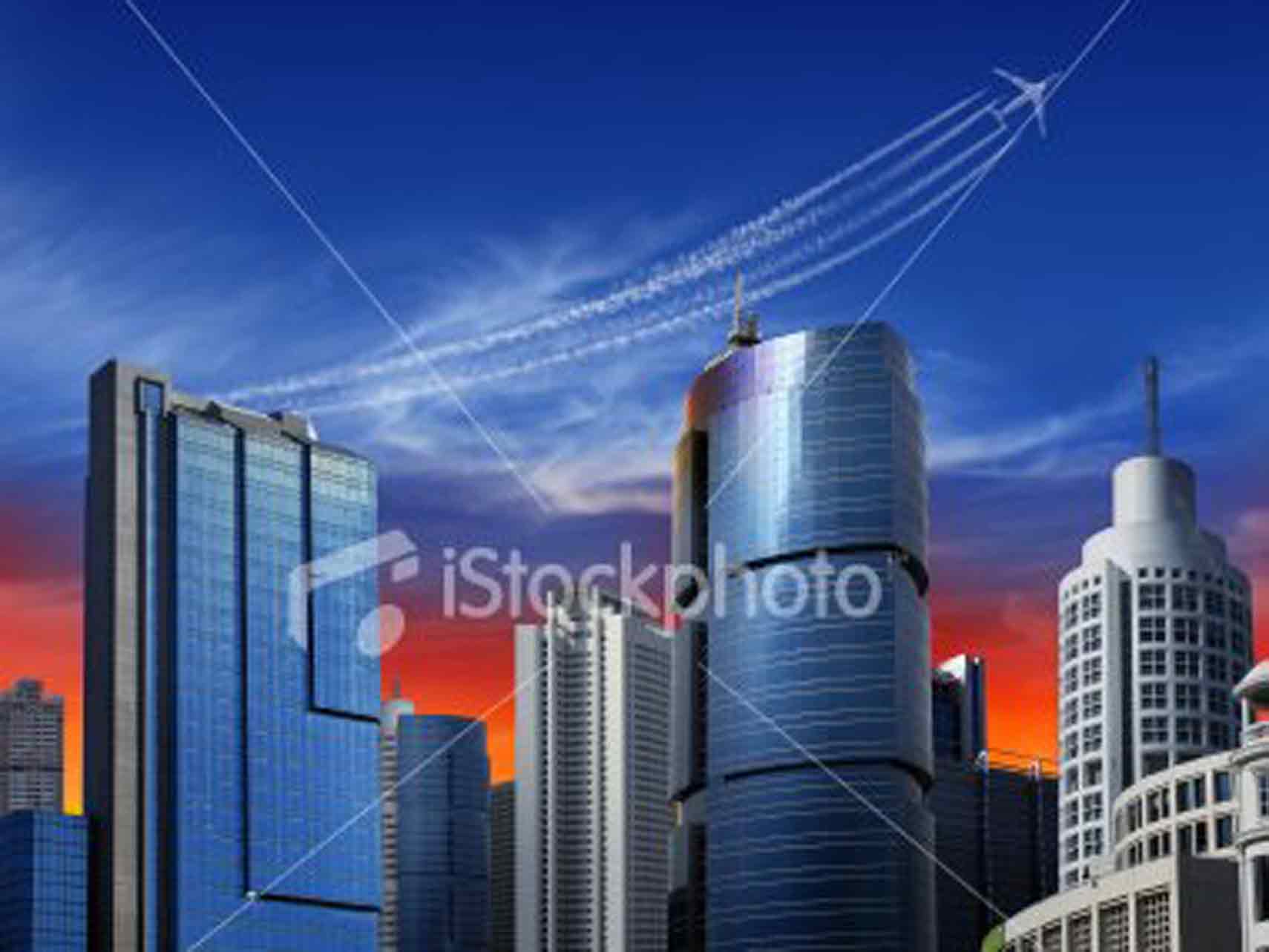 Airplane, Flying, Private Airplane, Commercial Airplane, Boeing, Airbus, Air Vehicle, City, corporate buildings, Office Building, Business, Modern, Place of Work, Sky, Cloud, red sky, Sunset, Tower, Skyscraper, headquarters, Window, Distillery Still, Glass, Apartment, Architecture, Building Exterior, Built Structure, Futuristic, Build Structure