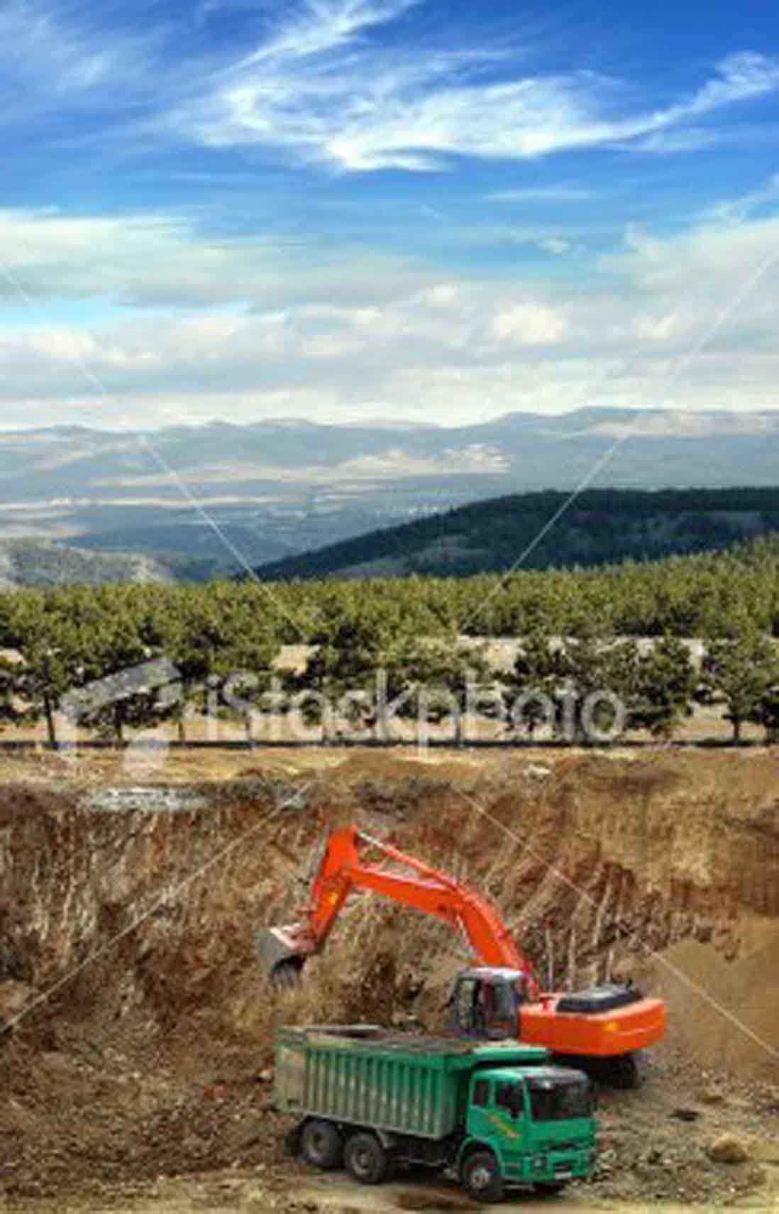 Earth Mover, Sky, Cloud, Pine Tree, Dirt, Landscape, Mountain, Blue, blue sky, Construction, Construction Machinery, Construction Site, Heavy, Machine, Development, Diesel, Loading, Digging, Mining, Truck, Dump Truck, Destruction, Progress, Tree
