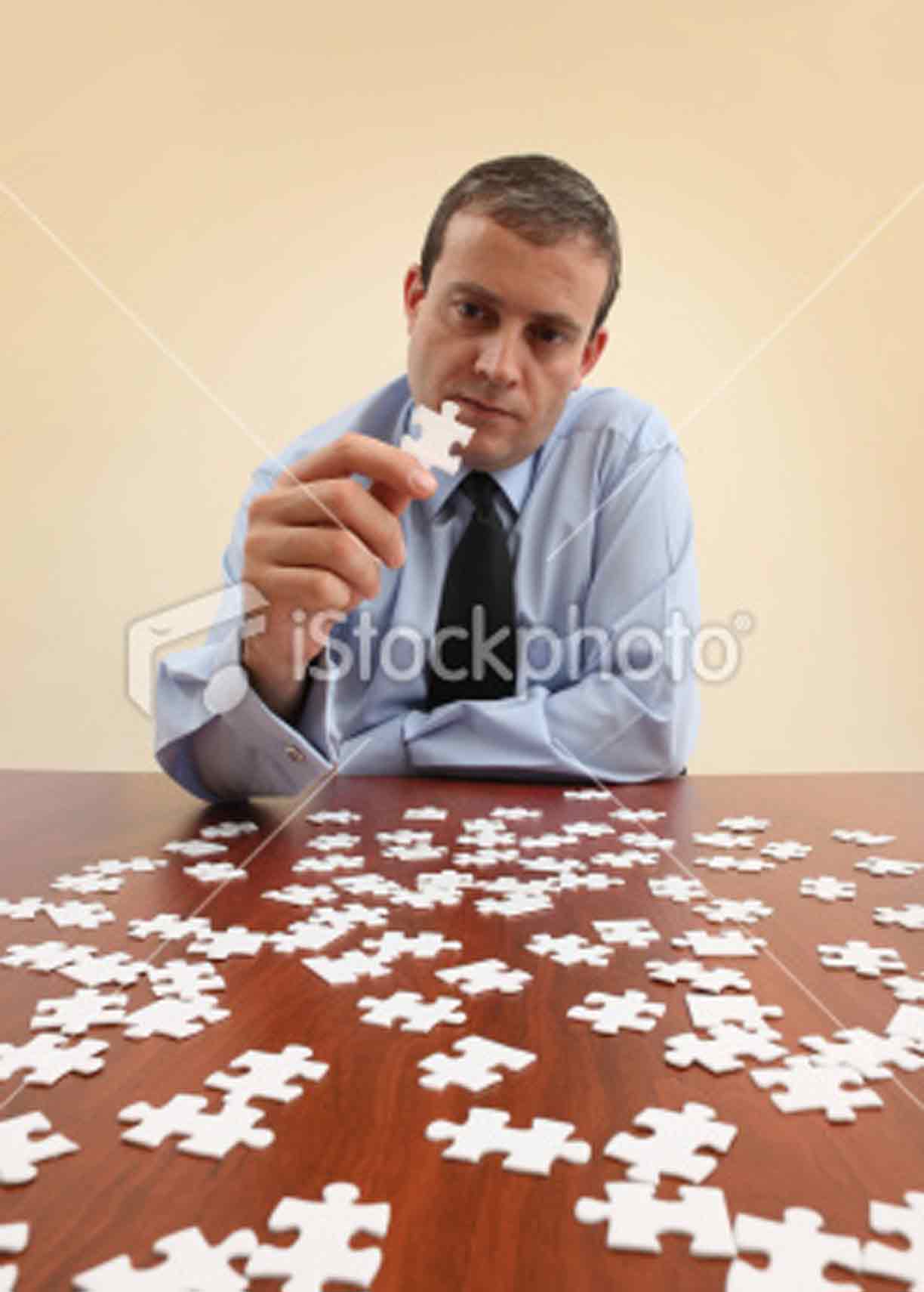 Businessman, Puzzle, Problem, Sayings, Jigsaw Puzzle, Jigsaw Piece, Ideas, Research, Concepts, Vision, Solution, Aspirations, Inspiration, Confusion, Strategy, Connect, Contemplation, Intelligence, Thinking, Sitting, Office, Business, Business Person, Office Worker, White Collar Worker, Manager, Shirt, Occupation, Adult, Mid Adult, One Person, People, Serene People, Expressing Positivity, Caucasian, Male, Men, Necktie, Human Hand, Human Face, Uncertainty, Looking, Table, Desk, Wood, Indoors, Color Image, Photography, Vertical