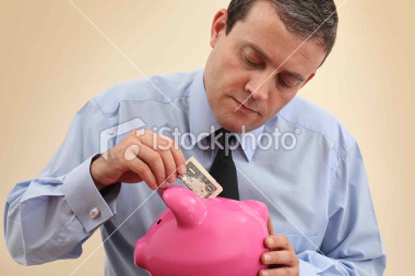Businessman, Piggy Bank, Dollar, Finance, Business, Home Finances, Coin Bank, Currency, Paper Currency, US Currency, US Paper Currency, Bill, One Dollar Bill, Inflation, Recession, Economic Depression, Investment, Savings, Banking, Bank Account, Making Money, Debt, Prosperity, Success, Paying, Wealth, Loan, Tax, Cash Flow, Abundance, Pink, Pig, Sayings, Business Person, Office Worker, White Collar Worker, Manager, Shirt, Occupation, Adult, One Person, People, Male, Men, Necktie, Human Hand, Human Face, Color Image, Photography, Horizontal