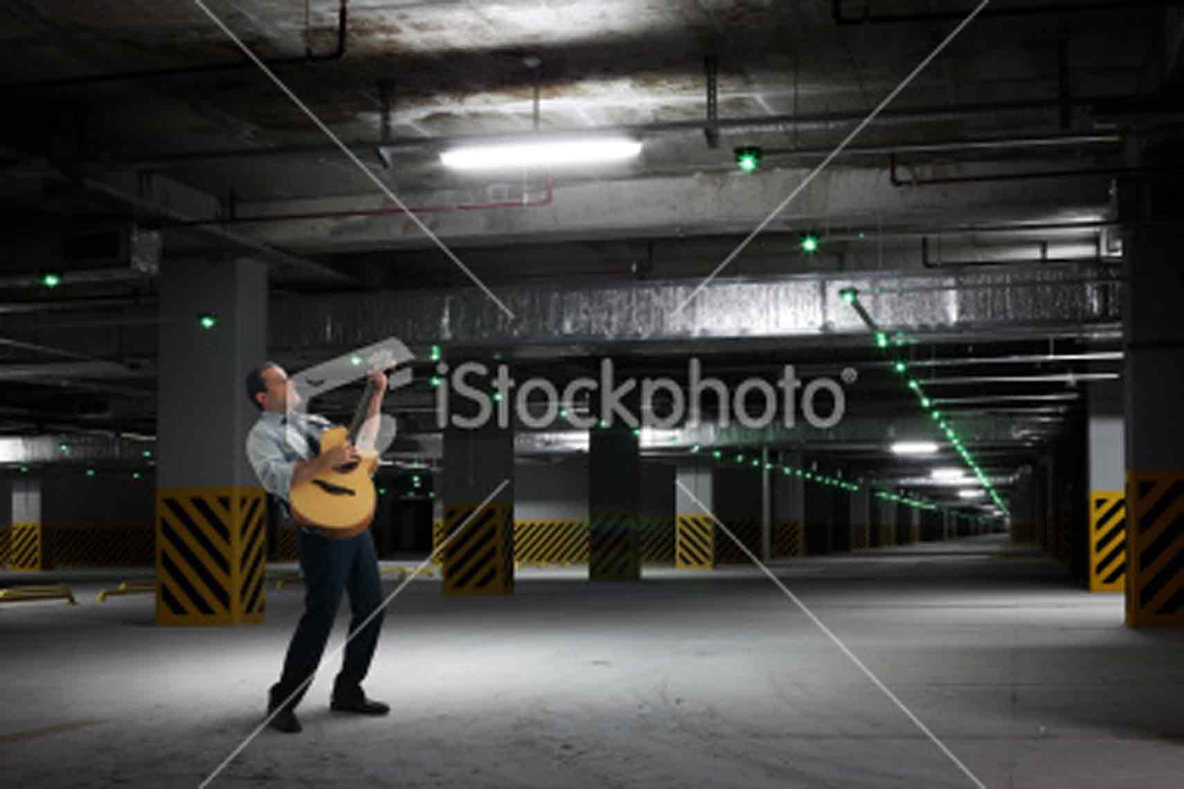 Businessman, Parking Garage, Guitar, Relief, Garage, Parking, Parking Lot, Basement, Empty, Dark, Column, Concrete, Light, Fluorescent Light, Illuminated, Urban Scene, City Life, Relaxation, Fun, Leisure Activity, Recreational Pursuit, Joy, Enjoyment, Concepts, Hobbies, Musician, Guitarist, Acoustic Guitar, Music, Musical Instrument, String Instrument, Sound, Playing, Working Late, Business Person, Office Worker, White Collar Worker, Manager, Shirt, One Person, People, Male, Men, Necktie, Full Length, Diminishing Perspective, Vanishing Point, Color Image, Photography, Horizontal